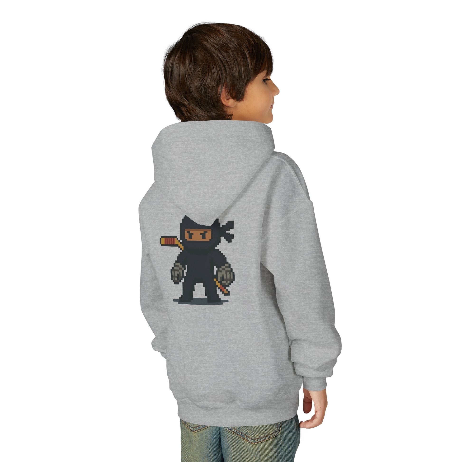 Introducing the Ninja Puck Youth Heavy Blend Hoodie. Perfect for off-ice training. This cozy sweatshirt brings warmth and comfort, making it ideal for chilly days or rink side activities.